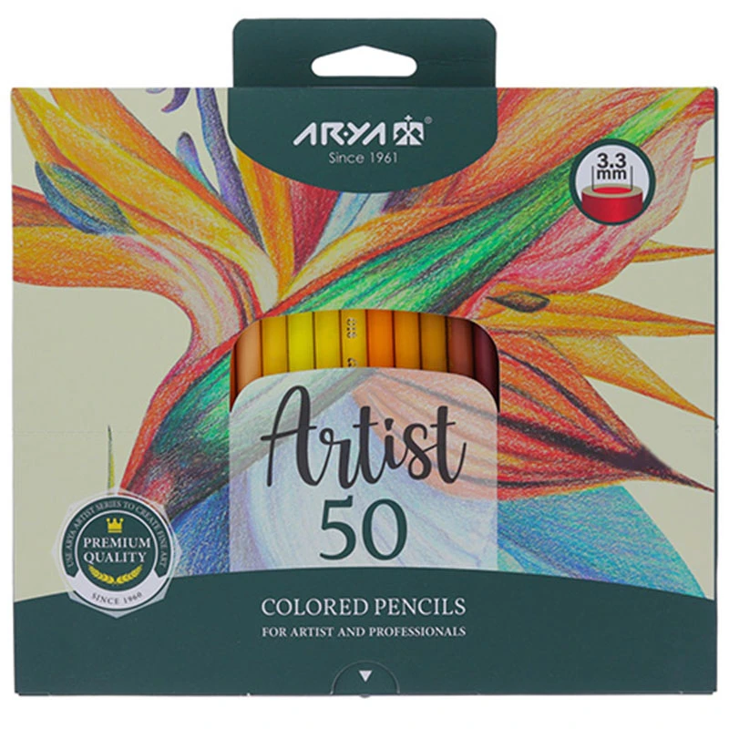 مداد رنگی آریا آرتیست ۵۰ رنگ مقوای ( طرح گل )